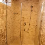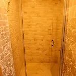 rummet var stiligt och stort, badrummet var väldigt rymligt.